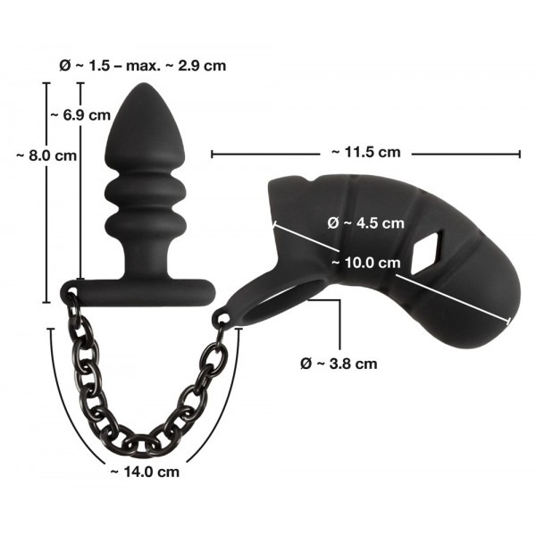 Пояс верности и пробка между собой соединены металлической цепью, которая придает изделию мега брутальный вид!