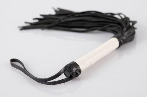 Стильная плеть-многохвостка с белой рукоятью - отличный ударный девайс для новичков в мире БДСМ игр!