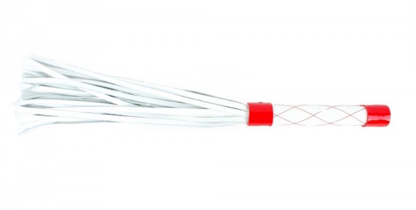 Плеть-многохвостка, из натуральной кожи белого цвета с красным декором - это, лучший вариант для самого первого ударного девайса!