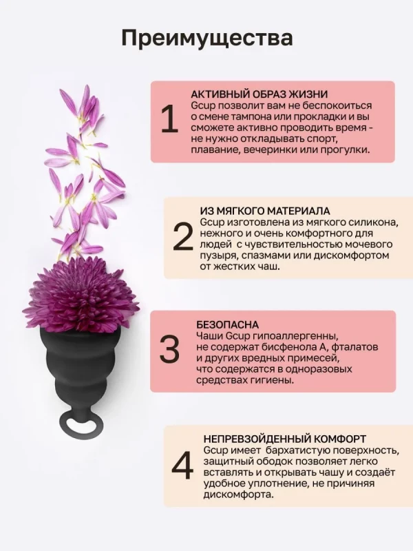 Менструальная чаша с обратным клапаном "G-Cup" супер надежная