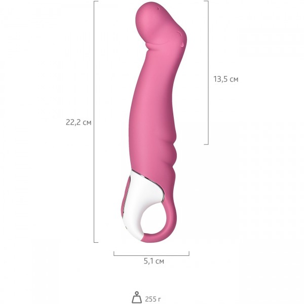 Увеличенная и изогнутая головка вибратора в виде запрокинутой мордочки бегемотика идеальна для моментального поиска и активной стимуляции G-точки! Выгнутый ствол с роскошным рельефом ближе к основанию, подарит ощущение полной заполненности лона и не оставит без внимания, ни один миллиметр!